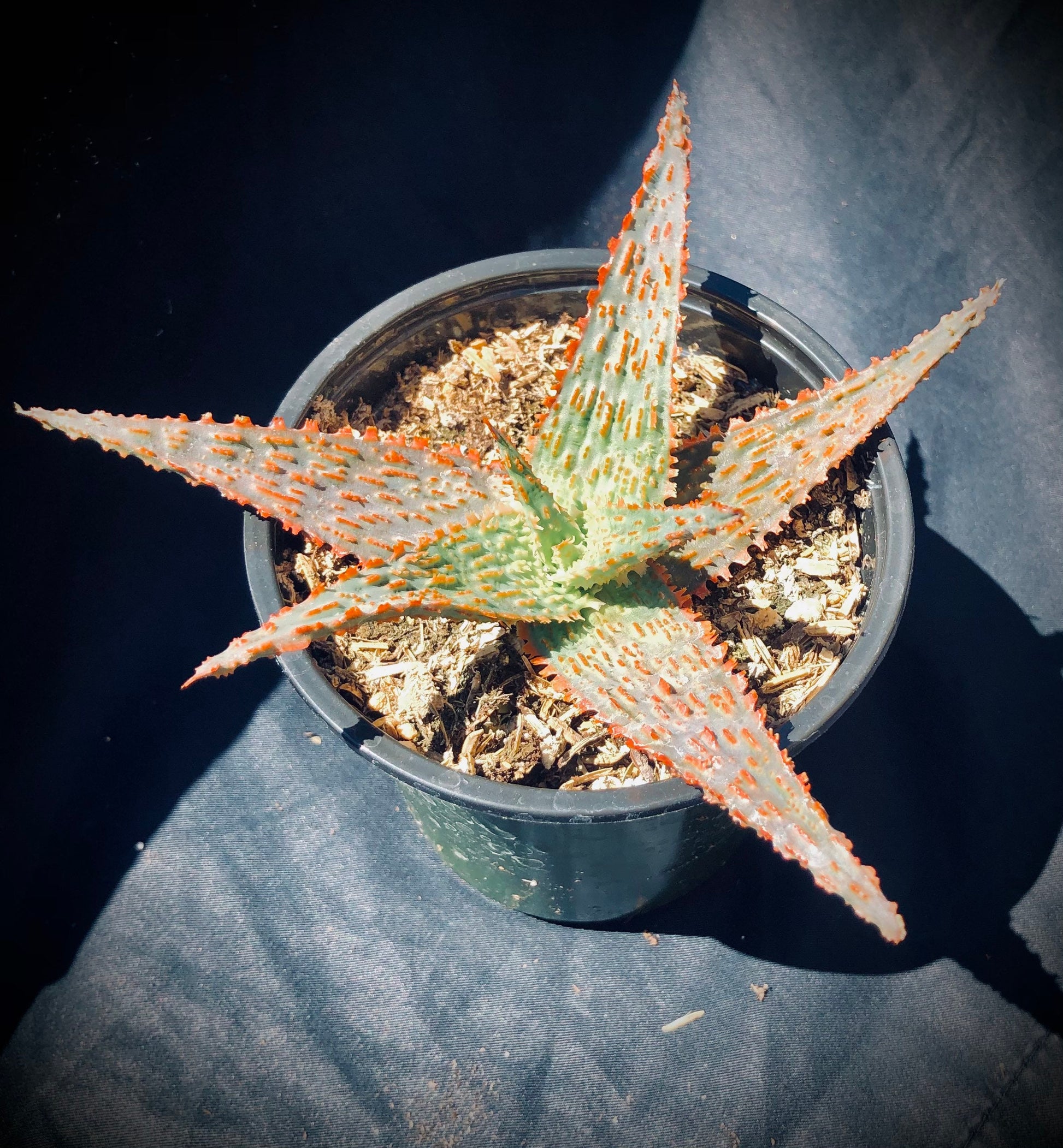 Orange Marmalade ( Prince Of Paradise) Star shaped Stocky Aloe with Orange Dashes lined with small jagged teeth . Low maintenance