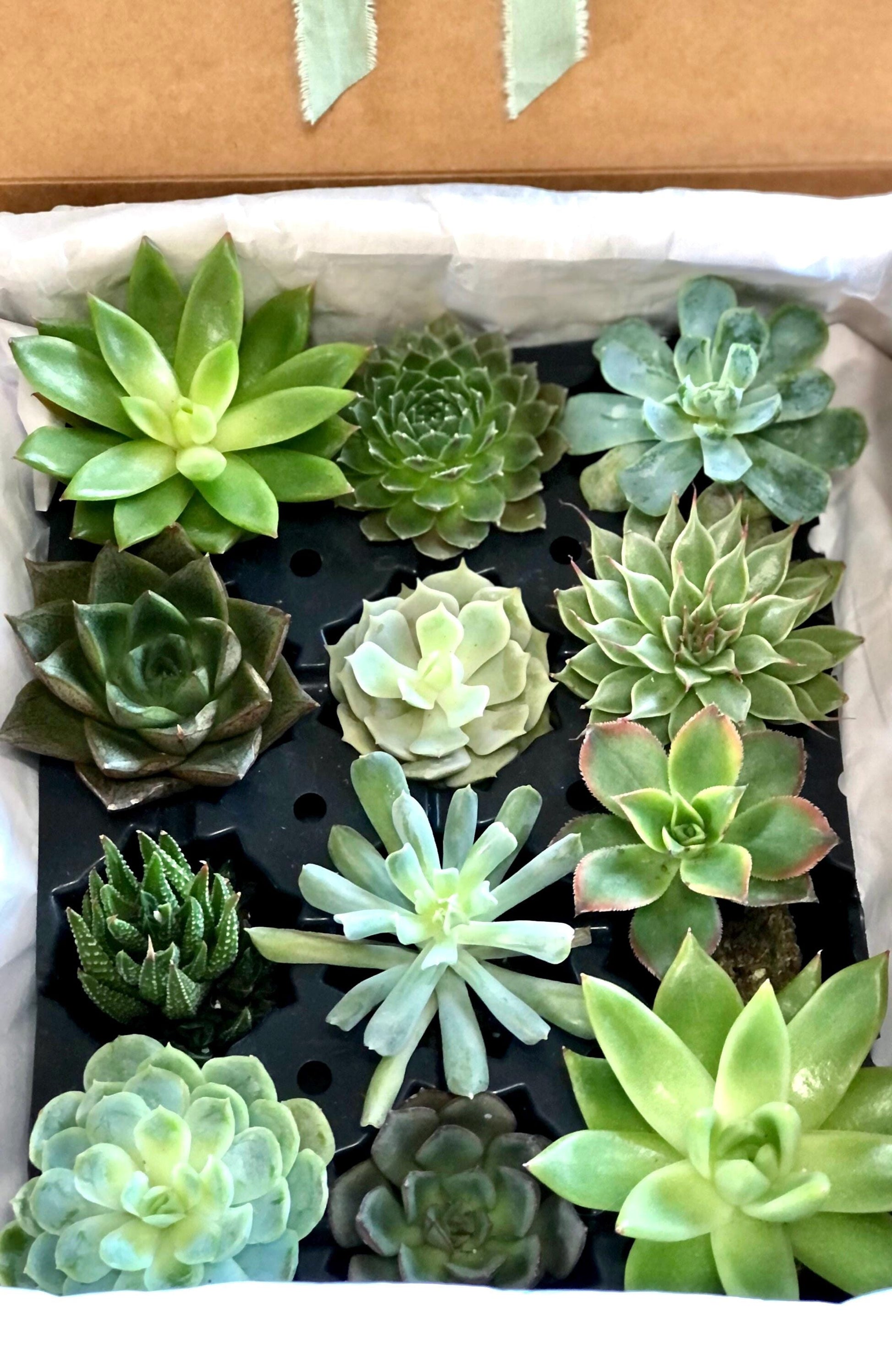 Why send chocolates, when you can send succulents ?! Chocolates will be gone in a week and these gorgeous succulents can last for years! You get 12 healthy Assorted succulent plugs Beautifully wrapped in a gift box with ribbon and tissue paper! The perfect gift for any occasion or holiday! Show your friends and loved ones how special they are with this thoughtful, elegant Succulent gift box !