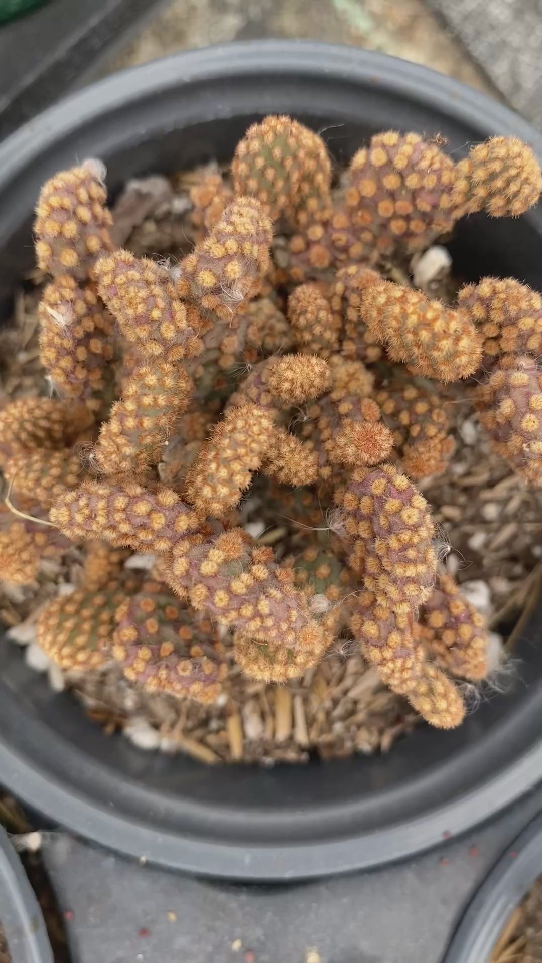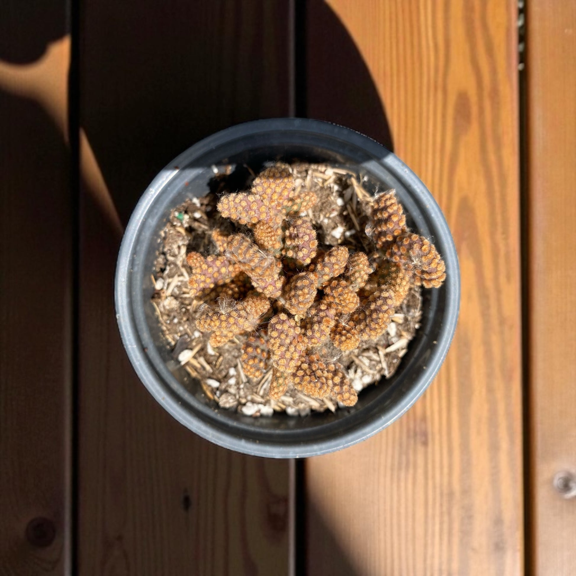 Miniature cactus , reaching approximately 8 to 10 inches tall.