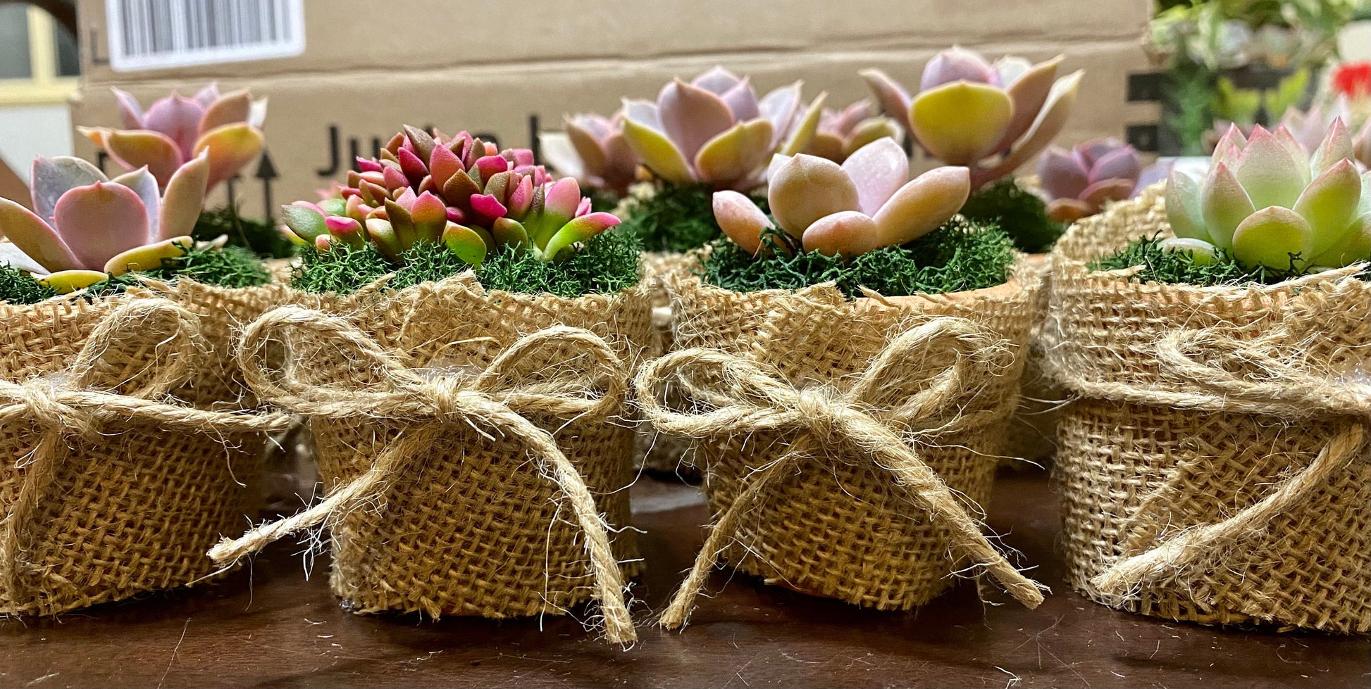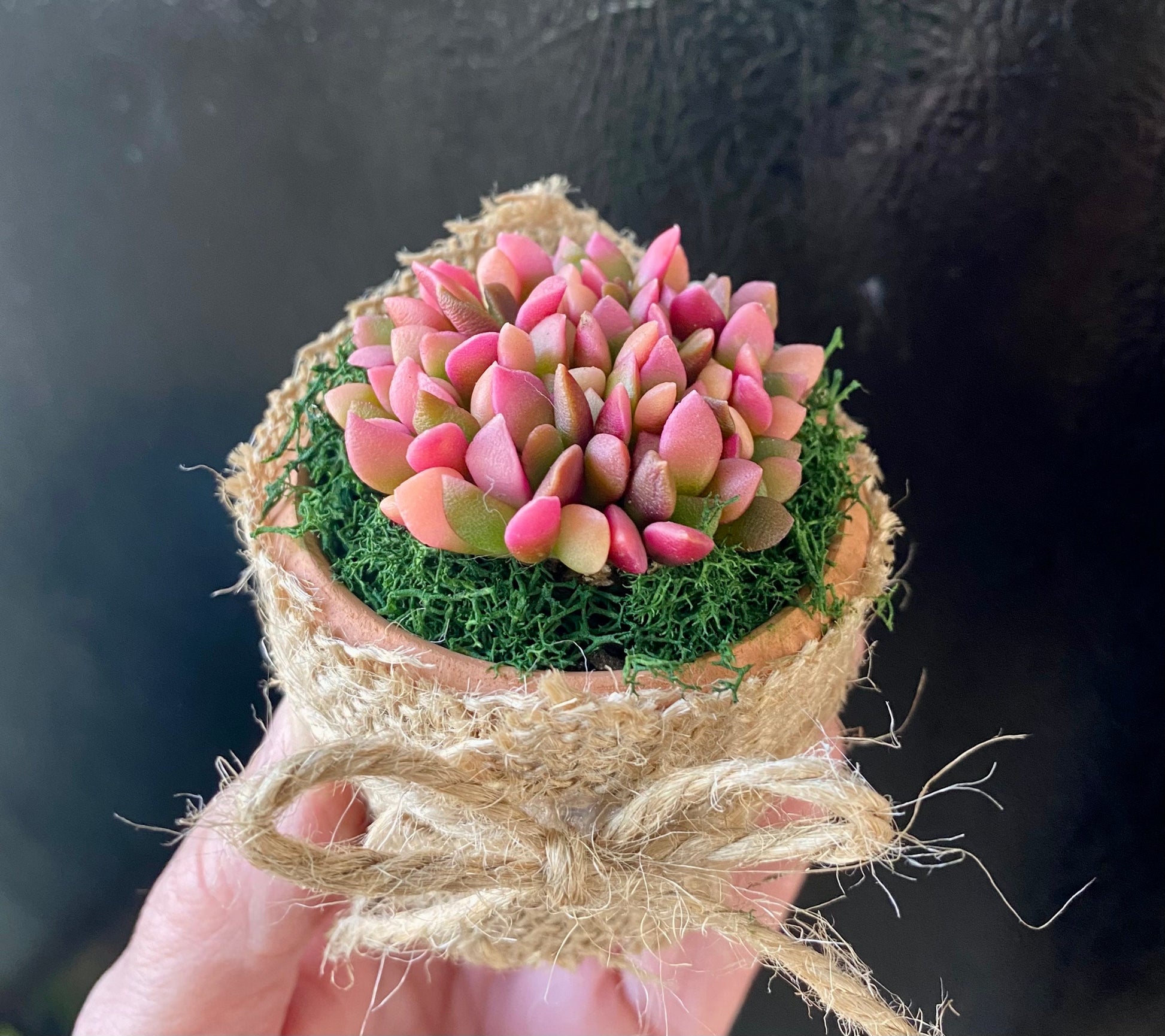 Elegant healthy 2" Succulents in a terra cotta pot , topped with moss and wrapped with Love for your Bridal or baby shower , Wedding , Birthday or any Event ! You could also just send one beautiful succulent to a special person to let them know that you are thinking of them ! Each favor is hand picked and carefully made 💕