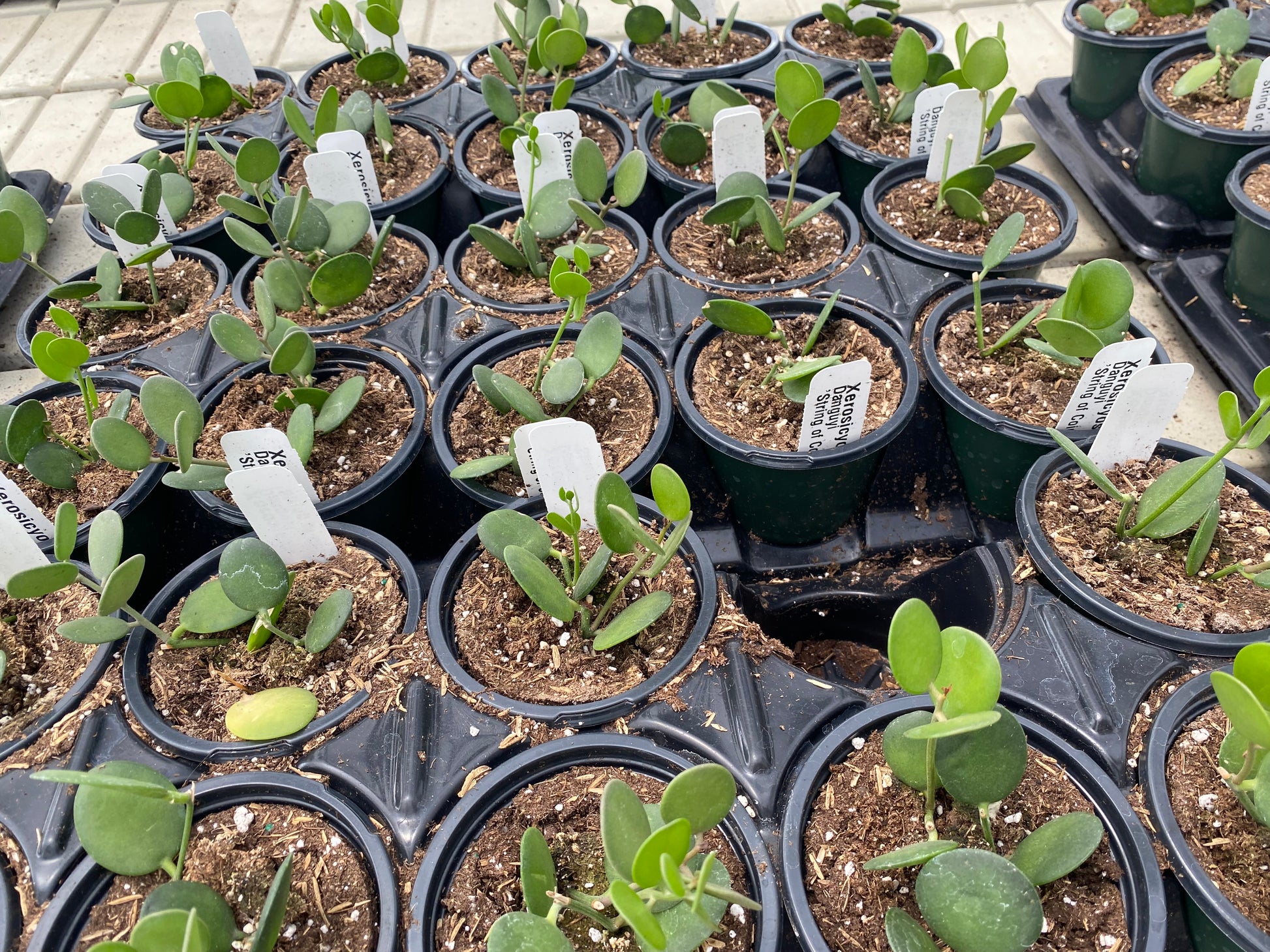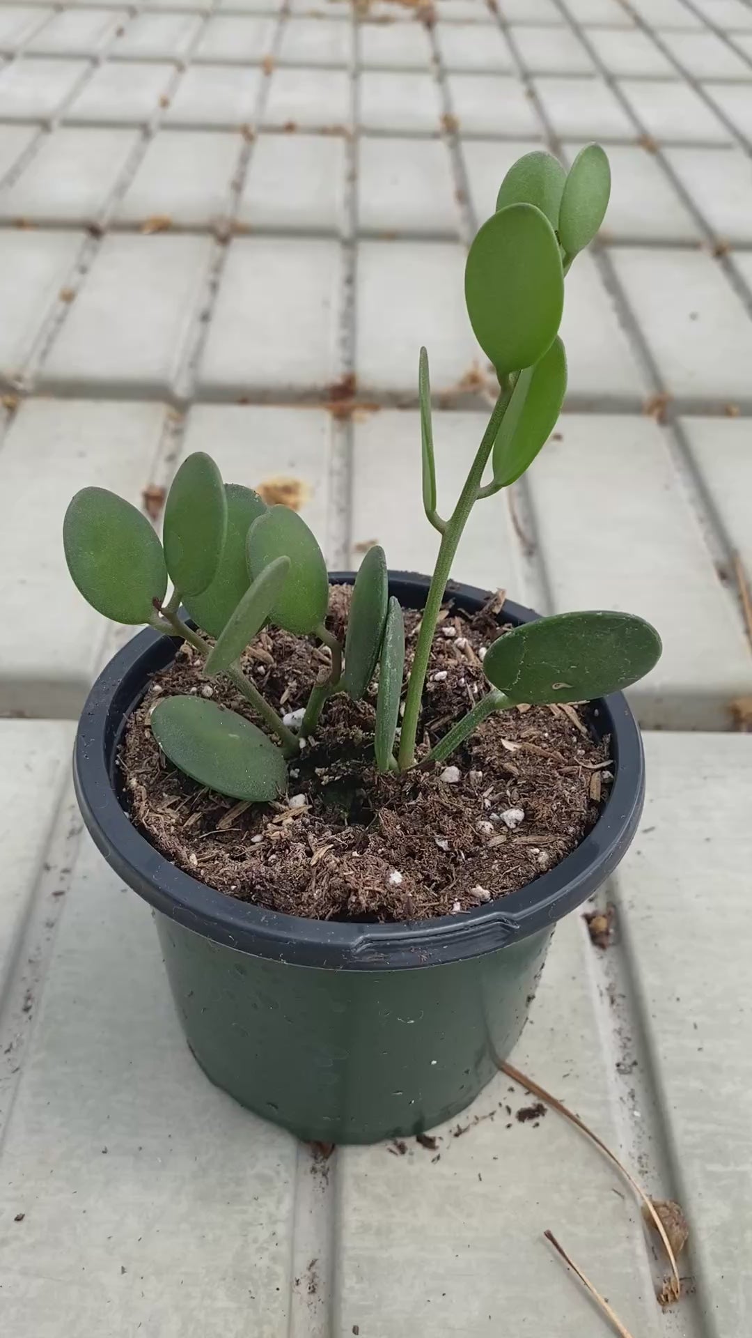 This beauty is a trailing succulent with distinctive, round, coin-shaped leaves. It's also commonly called the Silver Dollar Vine or Dollar Vine, Native to Madagascar.it can grow from part shade to full sun! Collectors delight !